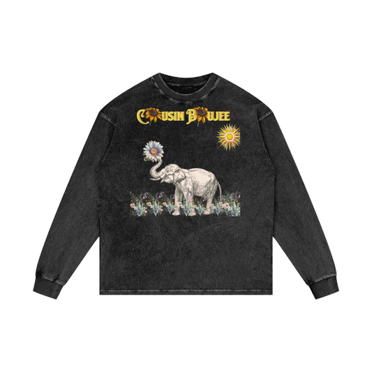 Elephants Are Always Happy Acid Wash Long Sleeve T-Shirt | Premium 250 GSM